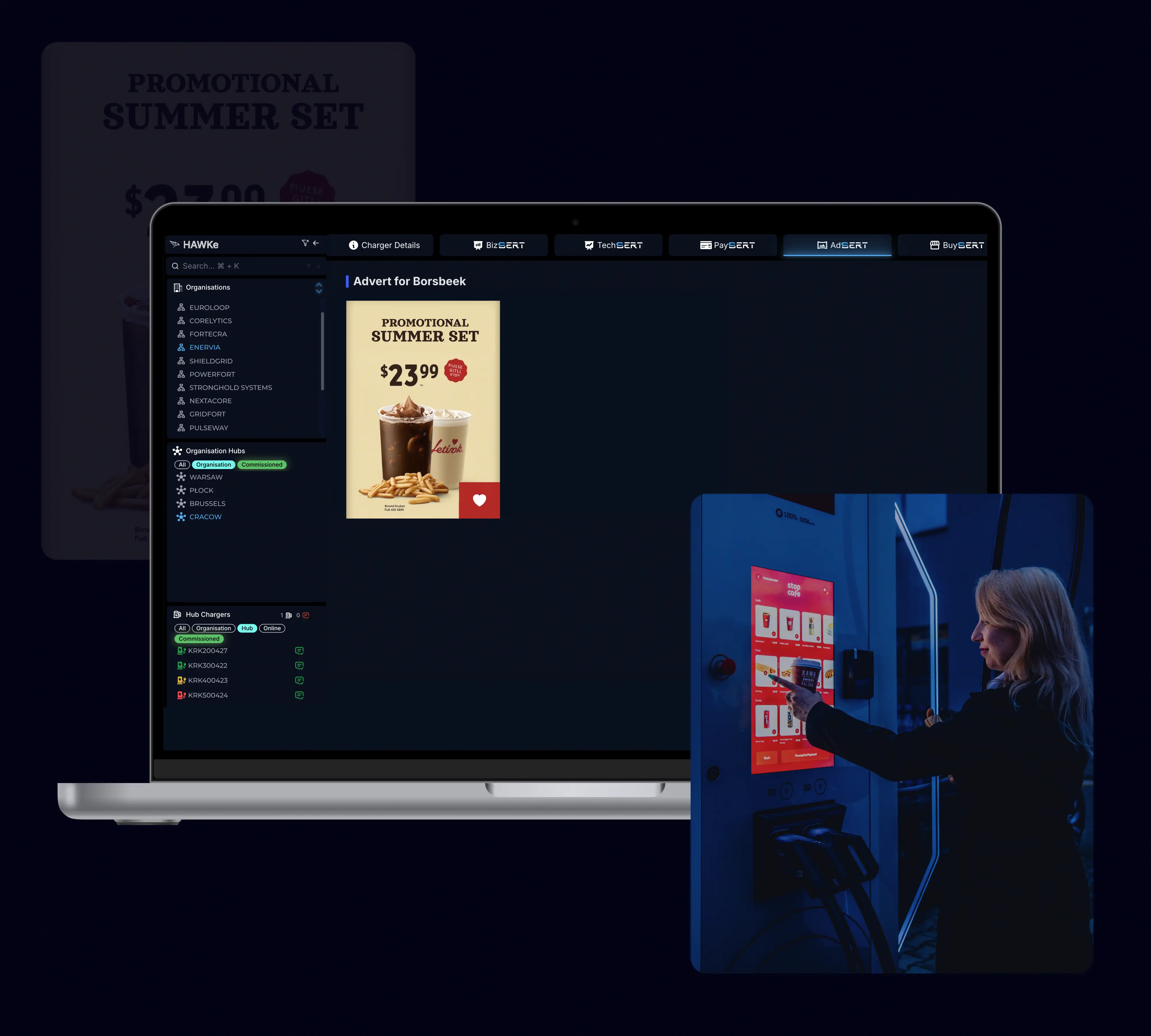 HAWKe doesn't just manage chargers – it transforms them into intelligent retail platforms that drive customer engagement and create new profit centers.